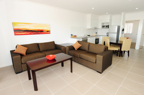 At Gladstone Heights Executive Apartments our three bedroom apartments have all bedrooms upstairs while all living areas are downstairs and also have private courtyards. All Apartments have large open plan living area with full kitchen facilities. Living areas are tiled and feature Smart TV, DVD Player and Austar to keep you entertained. High-speed broadband is available also.