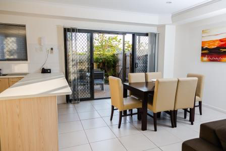 At Gladstone Heights Executive Apartments our three bedroom apartments have all bedrooms upstairs while all living areas are downstairs and also have private courtyards. All Apartments have large open plan living area with full kitchen facilities. Living areas are tiled and feature Smart TV, DVD Player and Austar to keep you entertained. High-speed broadband is available also.