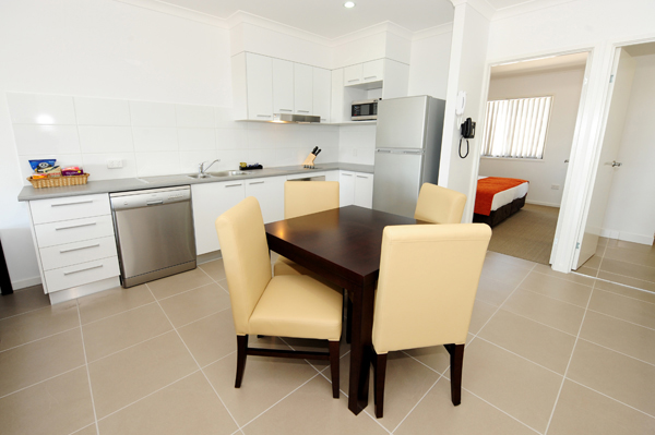 Spacious and Modern Gladstone Heights Executive Apartments offer a range of 1, 2 and 3 bedroom accommodation in a two-storey townhouse configuration. A combination of king double and king single beds are available. The townhouses have orientations to the east, west and north offering a variety of views and outlooks. Tiled living areas, with carpeted bedrooms. Multi-head reverse cycle air-conditioners will keep you comfortable in all weather. Kitchens are fully self contained which allow the guest to have the choice of cooking their own meals.